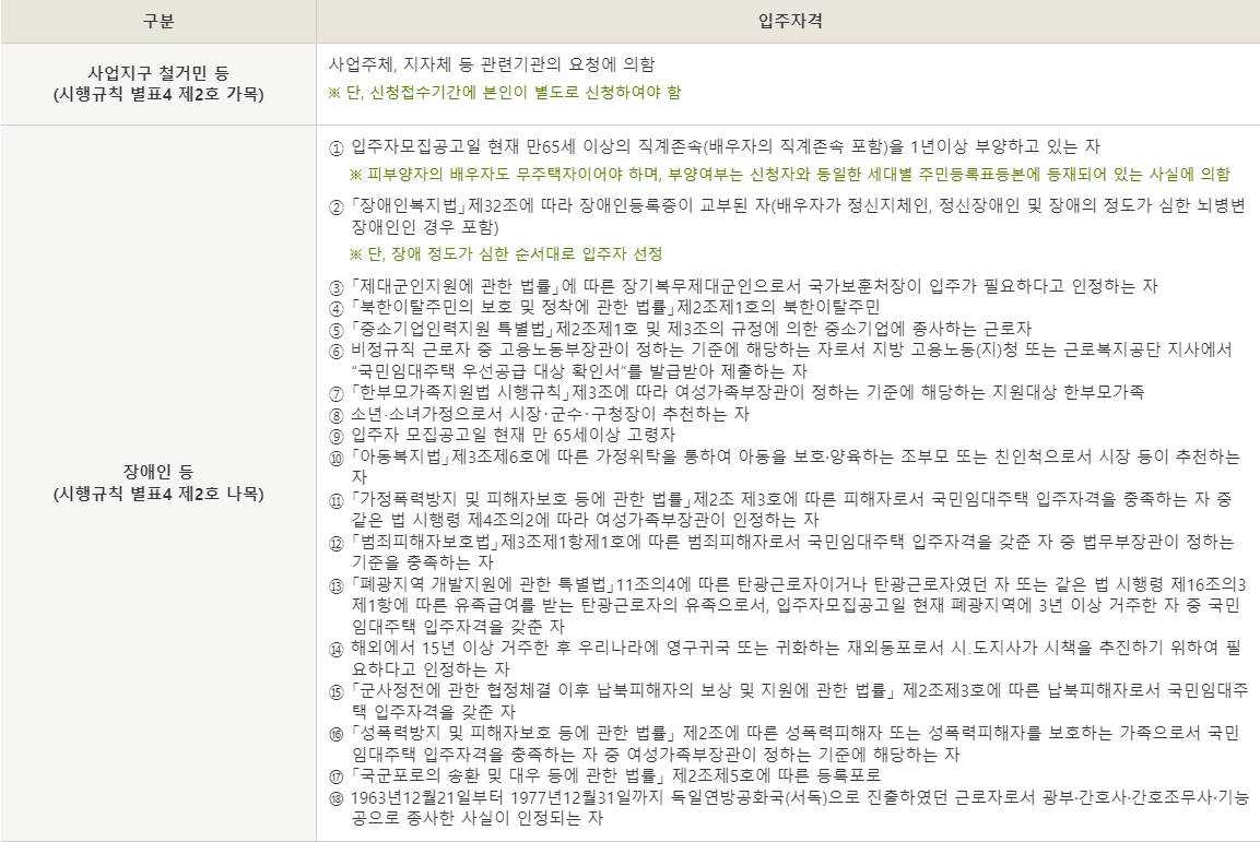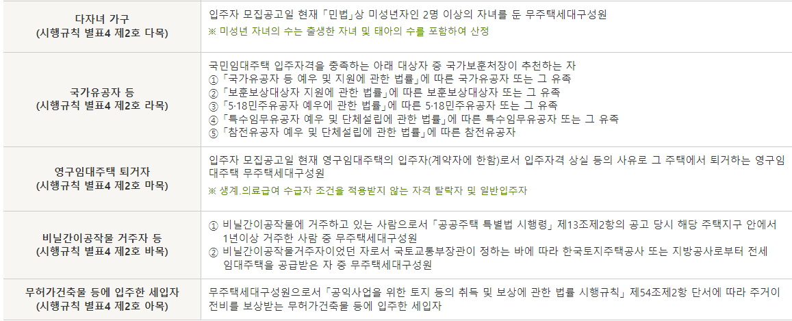 국민임대아파트 우선공급 대상은?